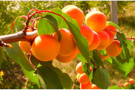 Виступаючі з природних тріщин абрикосових дерев натікання засихають на повітрі, утворюючи так звану абрикосову камідь.