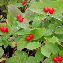 Опис: Невеликий чагарник до 1 м заввишки, зі світло-сірою корою і зовсім гладким, майже сидячим листям із закругленою верхівкою. Квітки з темно-пурпурним віночком. Плід – червона, майже куляста ягода, що складається з двох зав’язей, що зовсім зрослися.